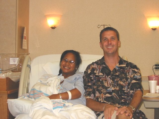 At the hospital I found Priscilla in a Triage room with Teresa at her side. The nurse double checked the cervix and found it to be about 2 centimeters dilated. Now this is about 9:40pm. Dr Donnelly is still on her way, and Priscilla is starting to scream. Not those often heard screams of "I LOVE TOM WILLIAMS" These were screams of pain. I was using my best material trying to make her laugh, and nothing. Now if I can't get you to laugh one of two things are happening. Either one I am still dressed or two you are in a lot of pain. Anyway I asked the nurse for something to help with the pain. I mean my ears and hands were killing me. Now for all of you guys out there that have not been in the delivery room. DO NOT an I mean DO NOT under no circumstance hold on to you wives hand while she is having a contraction. No matter how much she begs you--do not do it. She will snap your fingers off with out hesitation. SHE DOES NOT CARE! In her eyes THIS IS ALL YOU FAULT! Back to the action. I asked the nurse to help Priscilla with the pain. She said that Dr Donnelly will be here soon and to try the "breathing technique". That to me is a load of you know what. So now we are at about 10 pm. The nurse decides to check the cervix again. This, I am guessing, is a not so nice feeling. (Boys, I would relate this to a bowling ball being dropped three stories on to your crotch.) Anyway She checks the cervix setting Priscilla's alarm off, and walks out the door. I could here the nurses in the hall and it did not sound that good. The door swings open and the SWAT TEAM of the OB ward jumps in. The head nurse yells at Priscilla to stop screaming, and not to push. Within 30 second they change the room into a delivery room. They have a Doctor stand in for Dr Donnelly and now we have 5 woman yelling "PUSH". I guess we went from 2 centimeters to ten and fully effaced in about 5 minutes time. Now Dr Donnelly walks in to a crowd of women just in time to catch the baby. WOW what a thing to watch. We had no clue what the good Lord had in store for us that day.